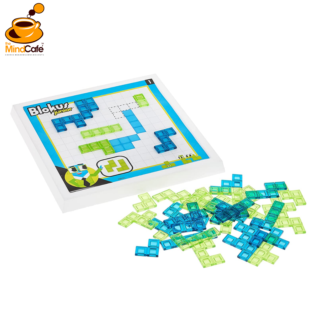 Award-winning family strategy game Blokus is reimagined for young minds as Blokus Junior! This kids’ strategy game is easy to learn, fun to play and encourages kids to flex their minds as they practice spatial reasoning, planning and problem solving. Similar to classic Blokus, the object of Blokus Junior is to get as many of your pieces on the board as possible, but you can only place pieces of the same color corner to corner. This kid-friendly version of the family-favorite board game features quicker gameplay, bigger game pieces and visual aids to help teach strategy basics and critical thinking to kids 5 years old and up. Blokus Junior includes everything young minds need for two-player brain-building fun, plus 8 mini-games to help them sharpen their skills. Colors and decorations may vary.