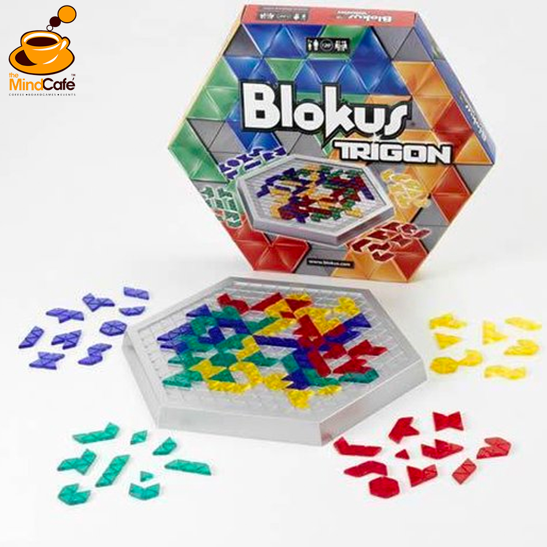 It’s a chip off the ole Blokus but with a challenging twist! Each Triangular Trigon piece you play must touch at least one other piece of the same color, but only at the corners! Angles jut in every direction, so new strategies are always evolving. Think carefully! You can block and be blocked at any moment! The game ends when no more pieces can be placed down, and the player with the lowest number remaining wins! Quick to learn, challenging to master. For 2 4 players, ages 7 and up. Includes 1 recessed game board, 88 Trigon pieces in four bright translucent colors, and guide.