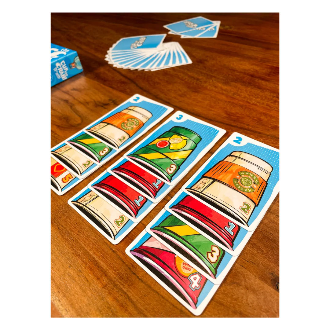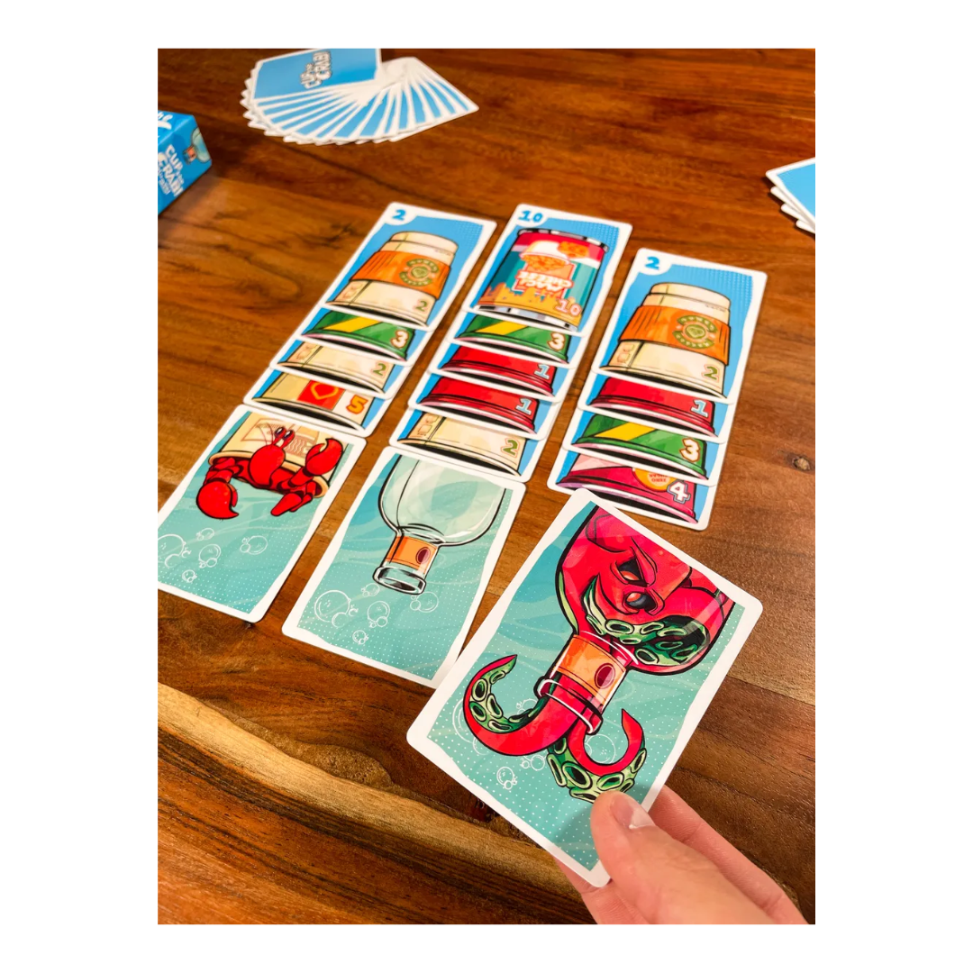Each round, players secretly choose cards to play and reveal them together. Everyone helps build stacks of cup cards, but only the best stacks score points! Use Crab and Octopus cards to claim stacks at the right moment, and Bottle cards to disrupt others. After several rounds, the player with the most points wins.