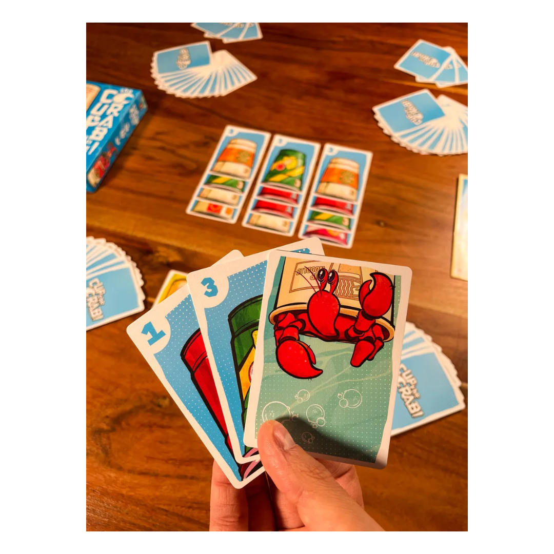 Welcome to a sunny beach where clever little crabs are competing to build the best homes using… trash? 😄 In Cup the Crab, players collect and stack colorful cups to create the most valuable shelters. But it’s not just about building — it’s about timing, strategy, and a bit of sneaky sabotage! Will you grab the perfect stack at the right moment, or ruin your opponent’s plans with a sneaky bottle? Cute, tactical, and full of surprising twists, this game keeps everyone thinking and laughing!