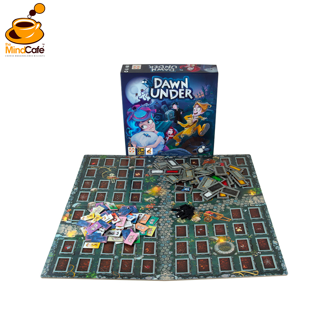 Dawn Under is a fun game of searching and memory. It requires some thought, a lot of memory, and, perhaps, a bit of bluff. But, memory is your most important tool in your search for daytime resting places for your vampires.Dawn Under: a family game without numbers, calculations, and scoring. It is a light, but fun game for children, but a challenging game for adults. Play the board game Dawn Under today!