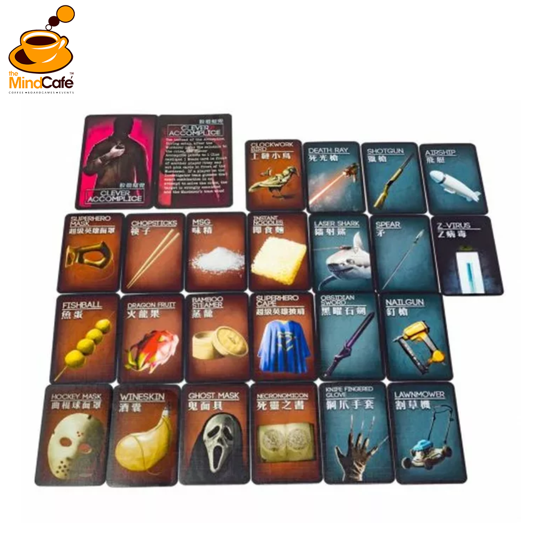 Deception: Undercover Allies brings more Means cards, Clue cards, Scene tiles, Events, and Roles to your investigation. All of these new cards were designed with the goal in mind of bringing more balance to the Murderer’s chosen weapons. The expansion adds many more cards to make the less chosen causes of death (like Illness/Disease) more viable options, adding more uncertainty to the game and creating more interesting end game narratives.