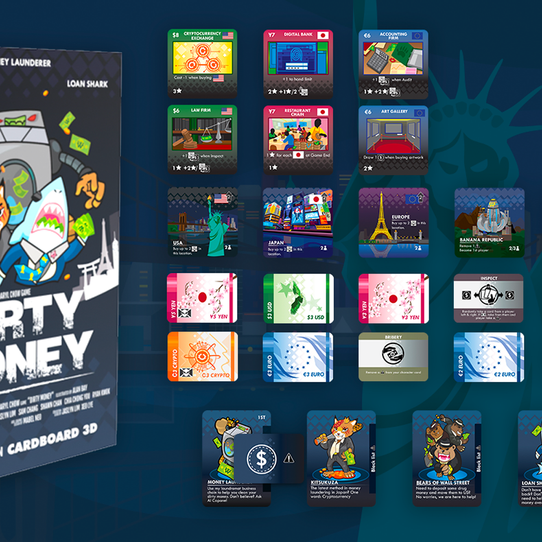 You have been plunged into the world of white collar crime, where you will need to get your hands and your money dirty as you take on the roles of corrupt politicians, loan sharks and tax evaders trying to launder the ill-gotten gains. Invest in artwork, businesses and real estate all around the world while trying to turn dirty money into clean money. Beware of your fellow players, who will attempt to expose your operation to the government with a legion of lawyers and accountants. Are you able to avoid the government blacklist while laundering the most amount of money?