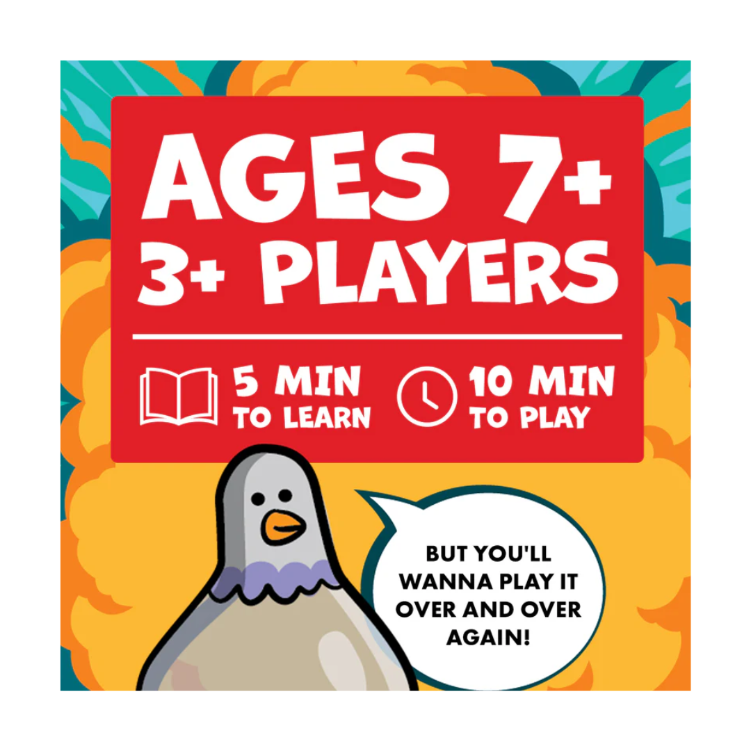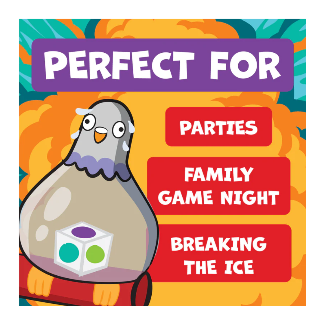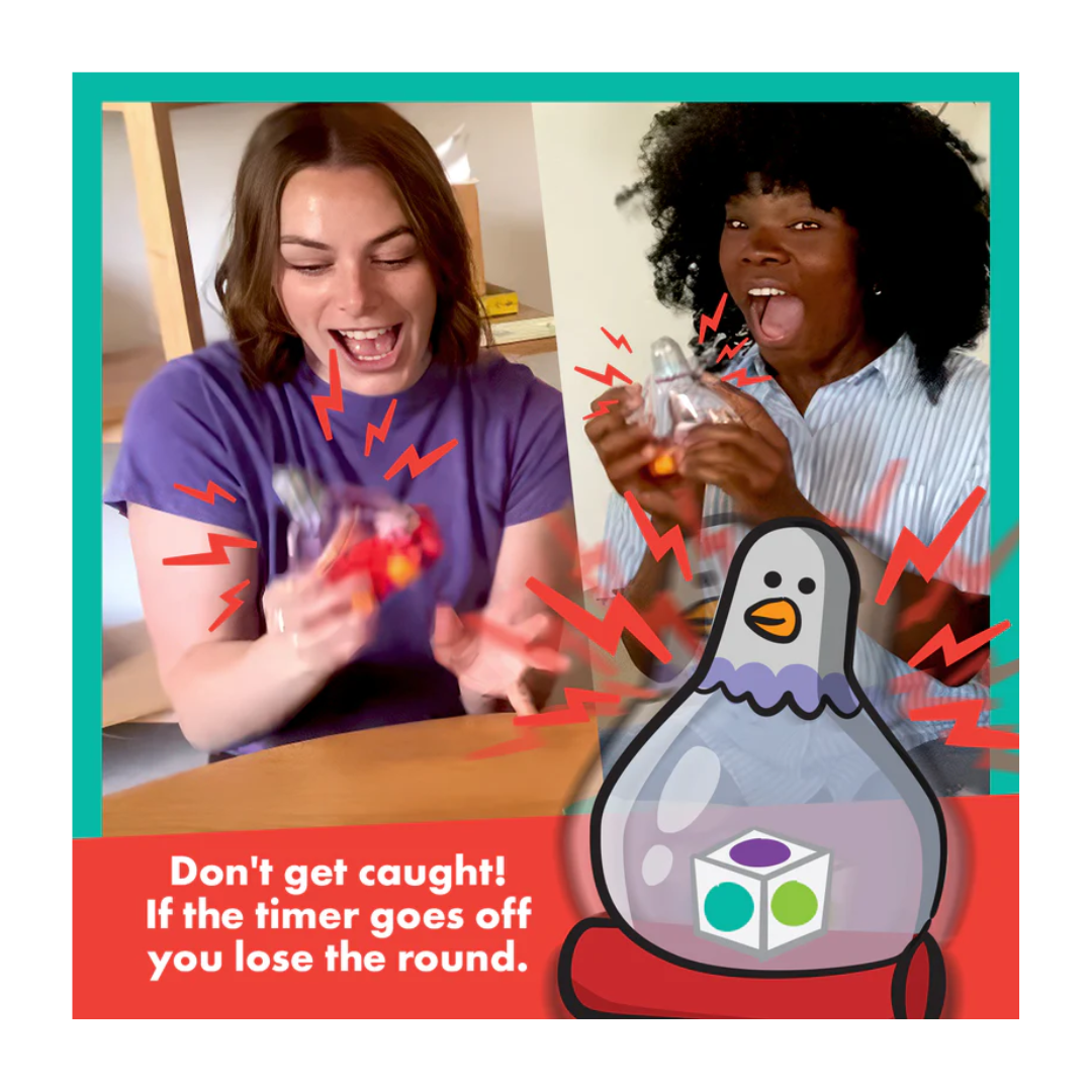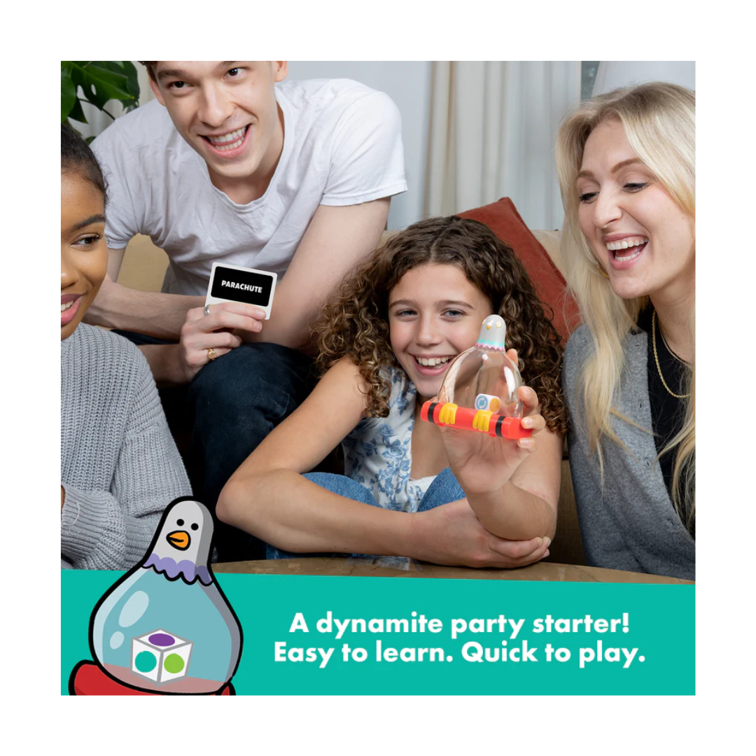 A family party game where you play fast, guess faster, and don’t get caught when the pigeon explodes.