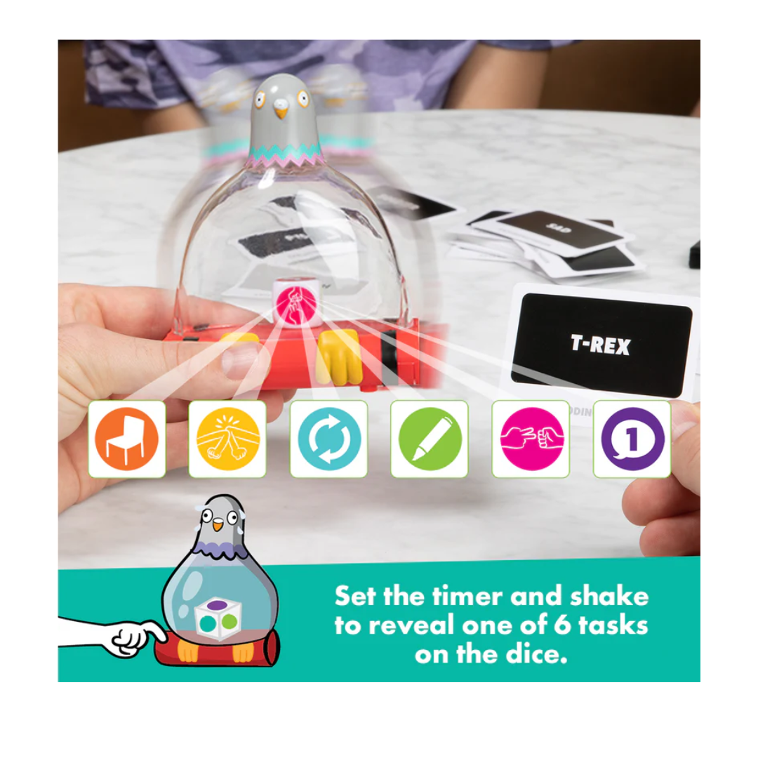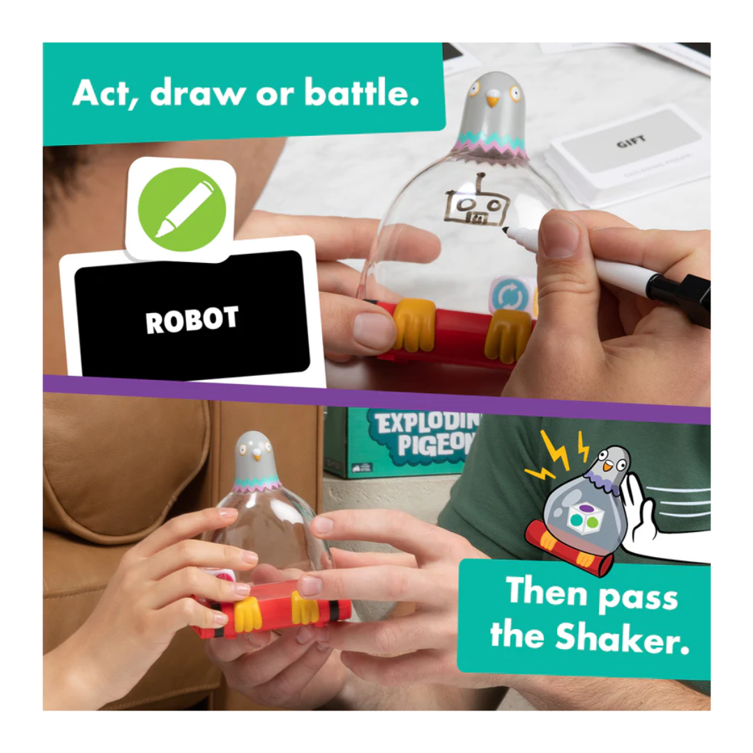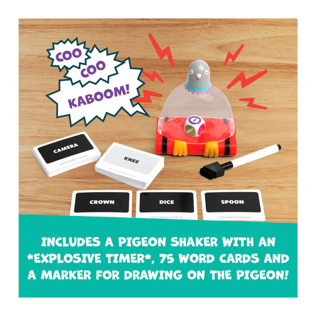 Exploding Pigeon is the rapid-fire challenge passing family game that’ll change your parties forever. Shake the Pigeon to reveal your hilarious challenge, it could be drawing, miming, or a quick round of rock, paper, scissors. Hurry and do it before passing the Pigeon to the other team! Scramble to complete as many challenges as you can, just don’t get caught with the Pigeon when the timer runs out! This instant party starter is easy to learn, quick to play, and perfect for bringing the energy to family game nights or gatherings.