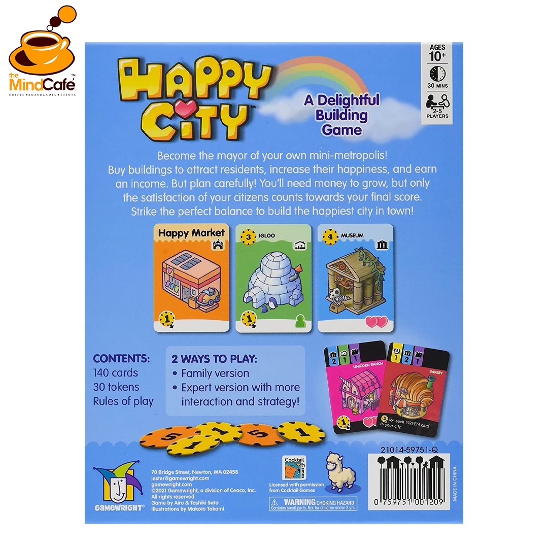 Happy City includes rules for two ways to play: a family version and an “expert version” that features more interaction and strategy.