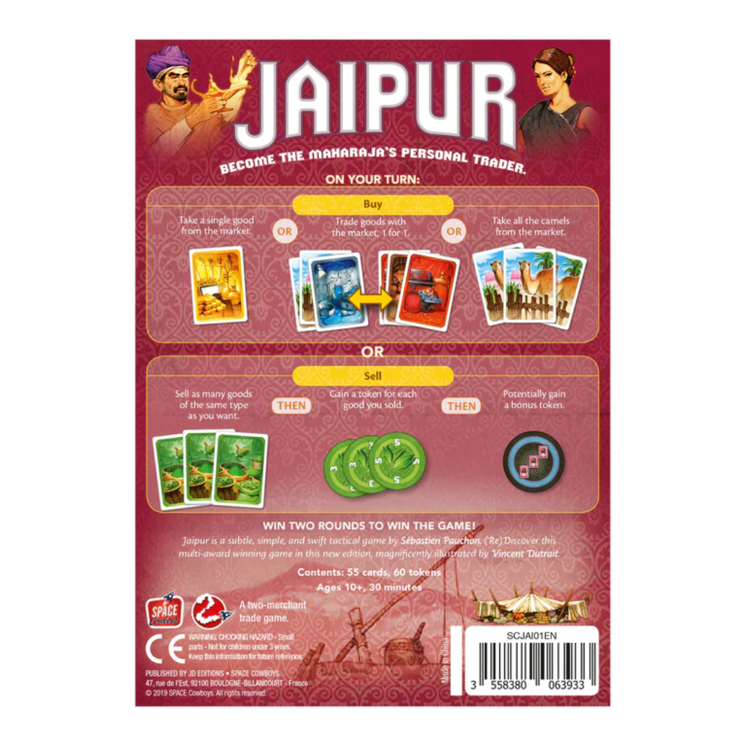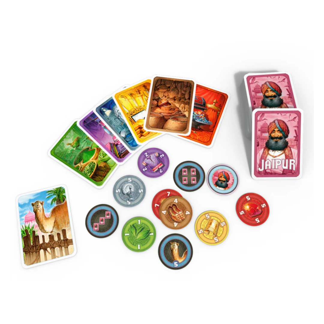 Step into the bustling markets of Rajasthan and become the richest trader in the city! In Jaipur, you compete head-to-head with another merchant — buying, trading, and selling goods at just the right moment. Timing is everything: sell too early and miss big profits, wait too long and lose your chance! With its simple rules but clever decisions, every round feels like a tense duel of strategy and intuition. It’s fast, smart, and incredibly addictive — the kind of game that makes you say “one more round!”