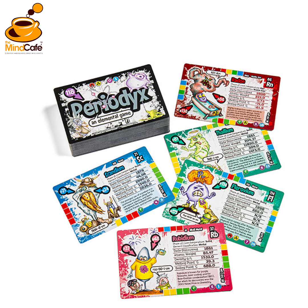 The periodyx game is fun, but the superstars of this game are the 118 element cards. The more you play with the periodyx game cards, the more you’ll know about the elements. And the more you know, the more you’ll appreciate and enjoy the periodic table of the chemical elements.