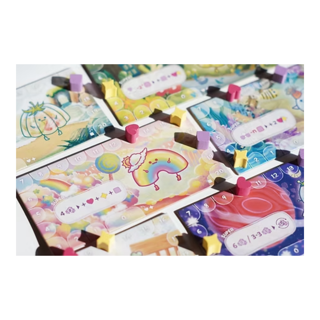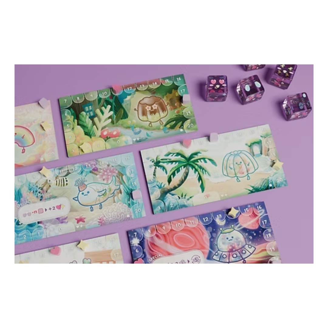 Welcome to a wobbly, squishy world where adorable jelly characters compete to reach the ultimate paradise — Paradice! In Puru Puru Paradice, every roll of the dice brings excitement, laughter, and unexpected chaos. Will you play it safe and secure your points, or push your luck and risk melting away? With its cute theme and unpredictable twists, this game keeps everyone on their toes and laughing till the end!
