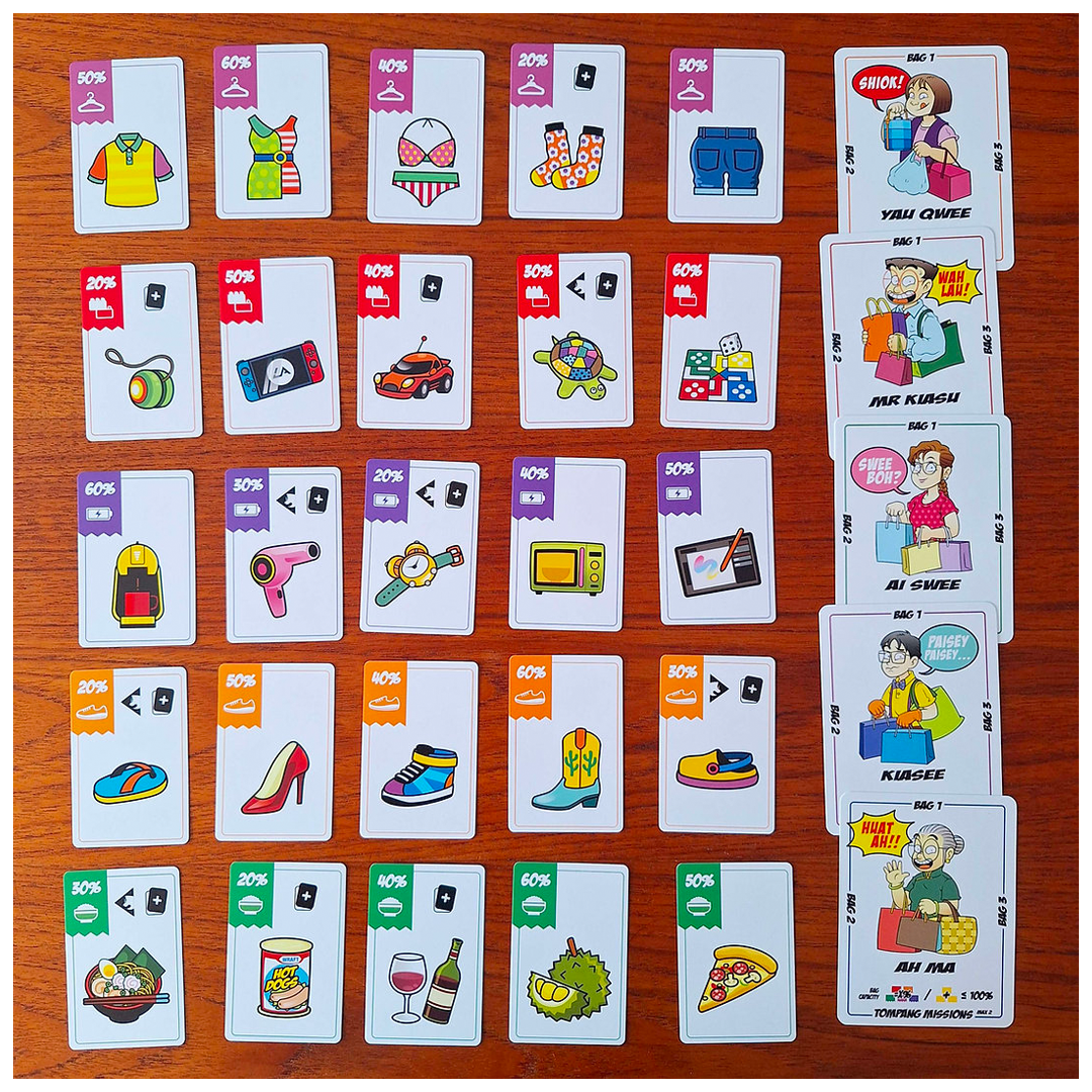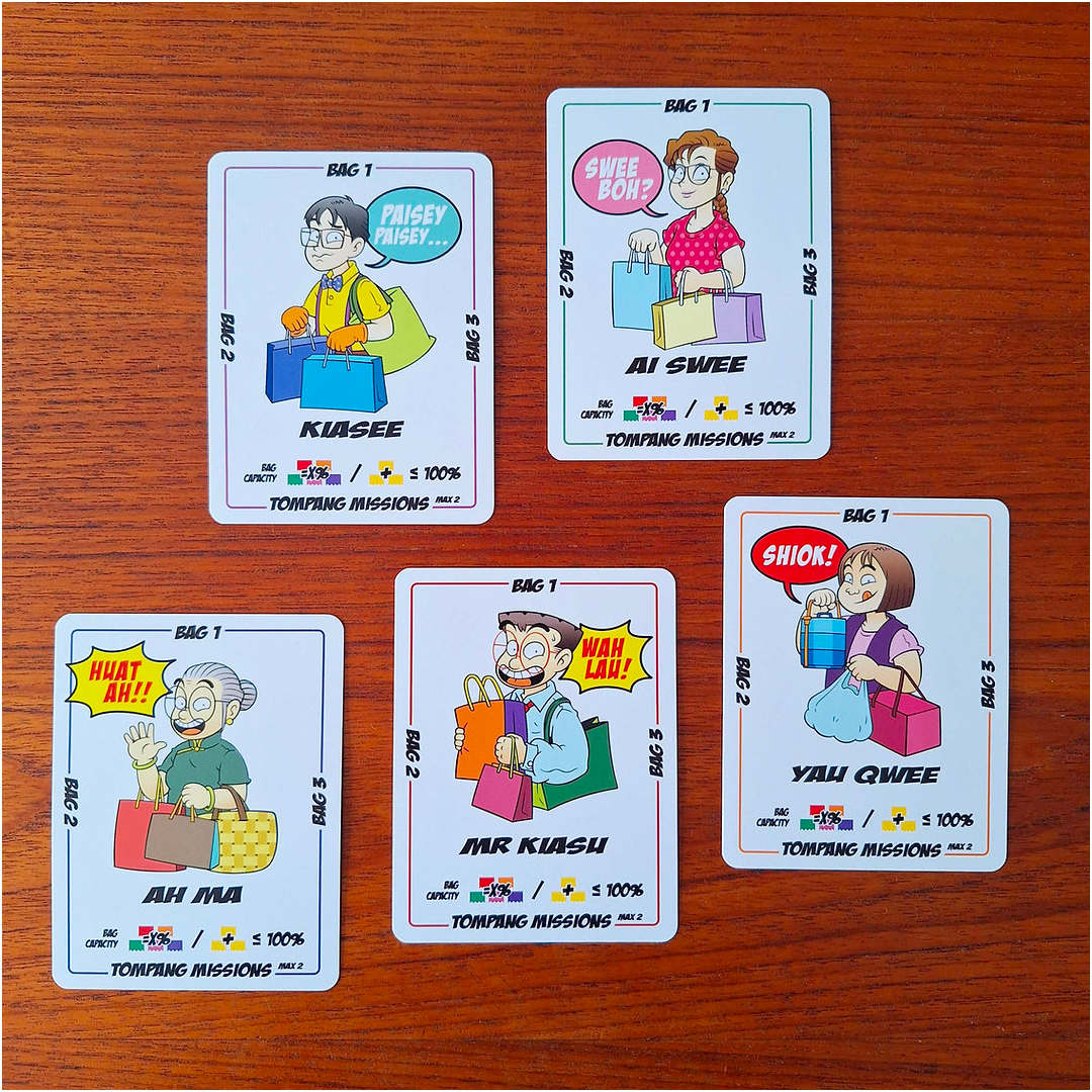 Armed with 3 trusty shopping bags, players will play as their favourite Mr Kiasu characters while trying to grab all the best discounts on display. But beware – the first player to pick up something that can’t fit in their bags has to drop 1 of their bags.
