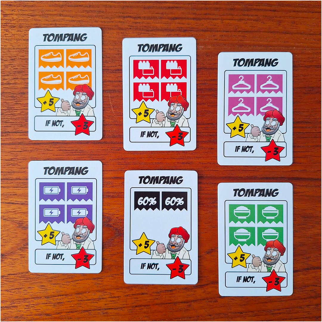 You can also pick tompang mission cards that give you +5 points if successfully completed, or -3 points if not fulfilled.