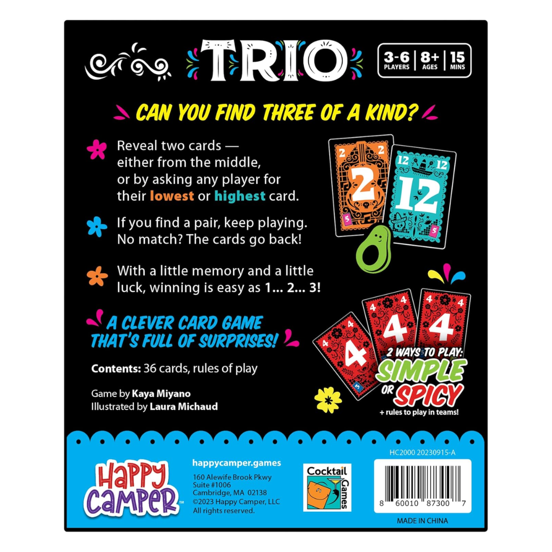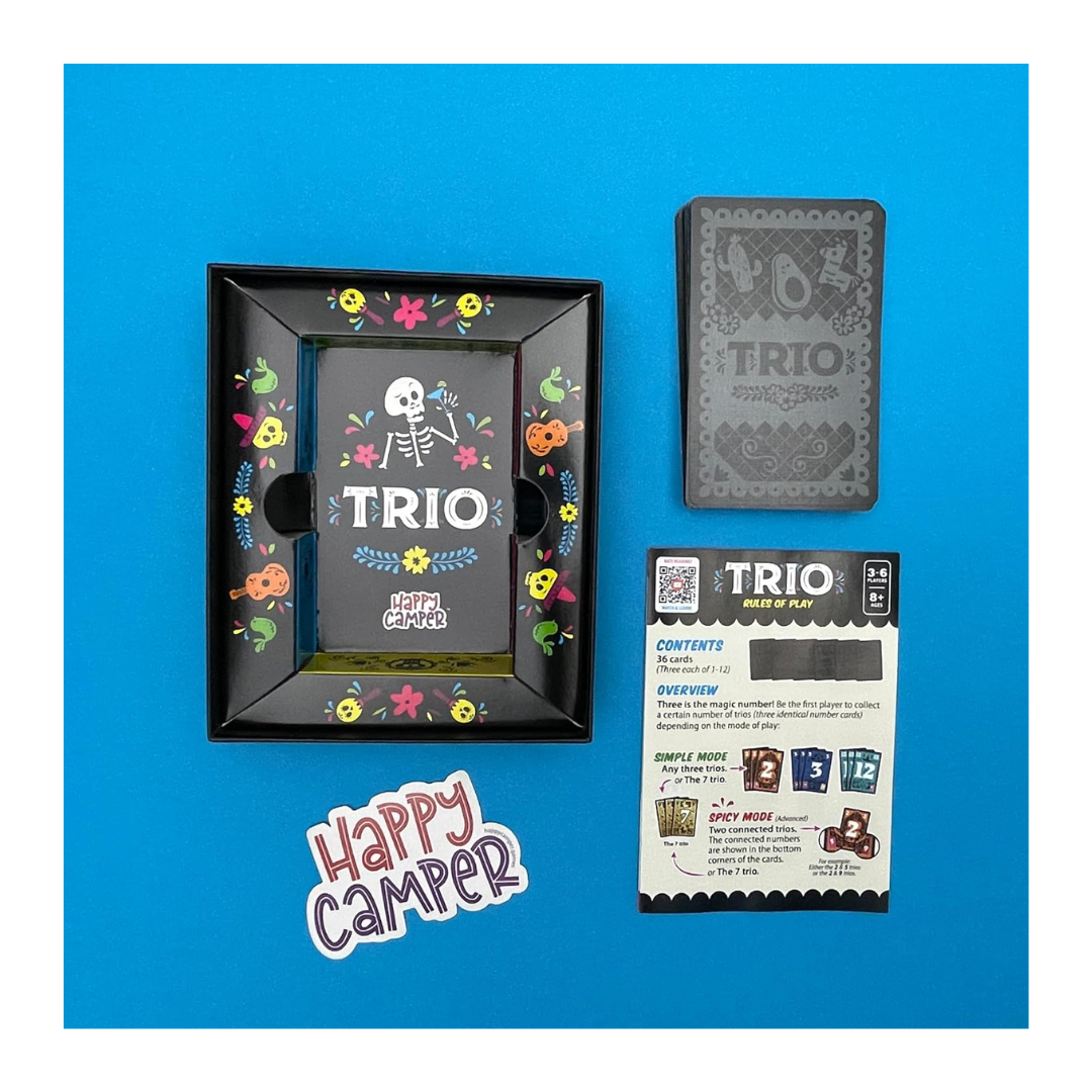 Simple, clever, and surprisingly addictive — Trio is a fast-paced card game that tests your memory, deduction, and a bit of bold guessing! Players peek at cards, remember what they’ve seen, and try to collect matching sets of three. But here’s the twist — you can reveal your own cards or challenge others to reveal theirs! It’s a mix of strategy and memory with lots of “aha!” moments and laughter when someone makes the perfect guess.