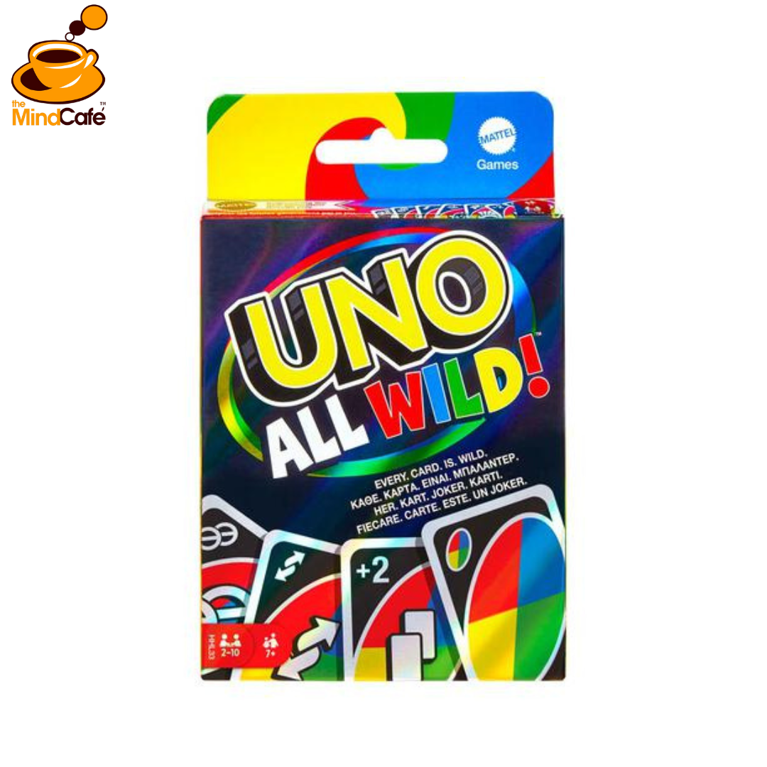 In UNO All Wild™ card game, every single card is wild for a fast-paced, even more unpredictable version of this family favorite! There’s no matching of number or color like regular UNO®, but it’s not as easy as it sounds. Special Action Cards really change the game! There’s a Wild Skip Two card where players skip two other players instead of the traditional one, a Wild Forced Swap card where players change entire hands and more! This edition is as addictive as it is exhilarating and makes a great gift for players 7 years and older. Colors and decorations may vary.