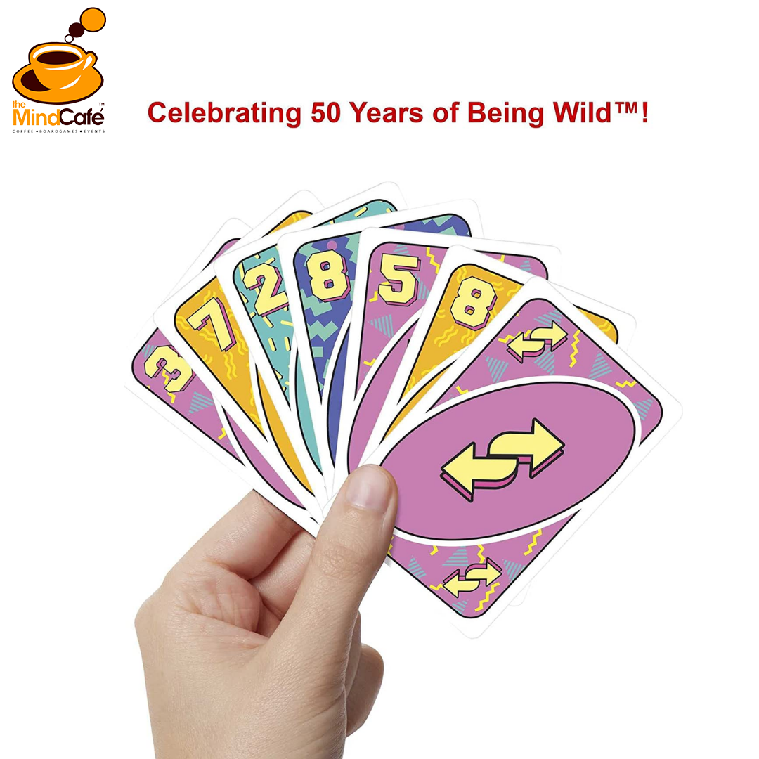 The UNO card game is celebrating 50 Years of Being Wild with a series of decks celebrating each decade from the ’70s to the present! This 1990s edition of everyone’s favorite matching card game has a soft pastel color palette and gridded look reflecting the totally tubular era. The game that brings people together for fast-paced fun and unpredictable twists has never been so nostalgic! Game play is like the classic UNO game, and when a player is down to one card, they must not forget to yell, “UNO!” As if! Each deck sold separately and subject to availability. Colors and decorations may vary.