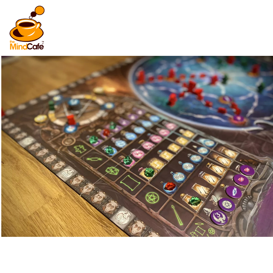 Advance on a magic wand to gain points and take additional actions, with the actions being doubled should you currently be the most advanced player on the wand.